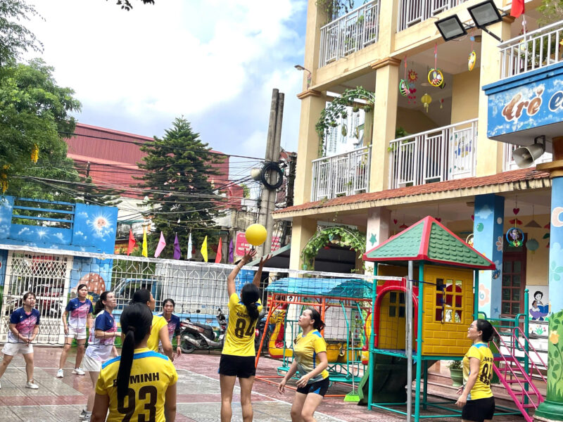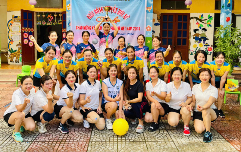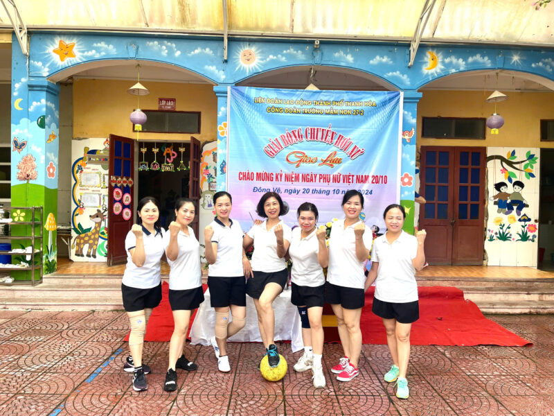 Nhân dịp kỷ niệm Ngày Phụ nữ Việt Nam 20/10, Công đoàn trường Mầm non 27-2 đã tổ chức buổi giao lưu bóng chuyền hơi nữ với sự tham gia sôi nổi của cán bộ giáo viên và nhân viên trong nhà trường. Đây không chỉ là dịp để tôn vinh những người phụ nữ đảm đang, nhiệt huyết mà còn là cơ hội để chị em rèn luyện sức khỏe, tăng cường tinh thần đoàn kết và giao lưu học hỏi.
