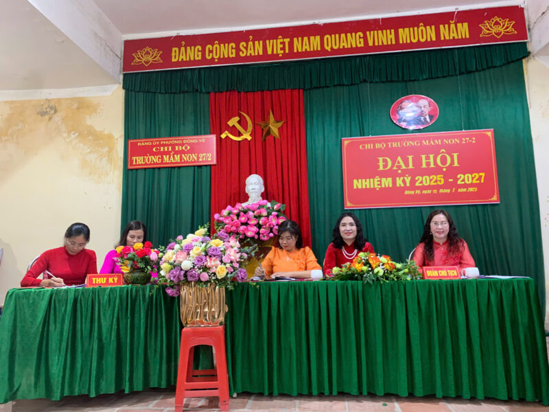 Ngày 15 tháng 02 năm 2025, Chi bộ Trường Mầm non 27-2 đã long trọng tổ chức Đại hội Chi bộ nhiệm kỳ 2025 – 2027. Đây là sự kiện chính trị quan trọng của nhà trường, nhằm tổng kết, đánh giá kết quả thực hiện Nghị quyết nhiệm kỳ 2022 – 2025, đề ra phương hướng, nhiệm vụ trong nhiệm kỳ mới, đồng thời bầu ra Ban Chi ủy để lãnh đạo chi bộ tiếp tục phát triển.